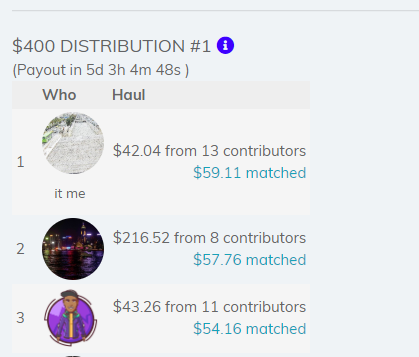 • 2,348 contributions and 1,085 matching payouts